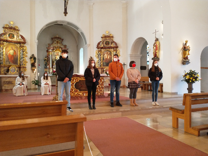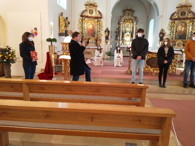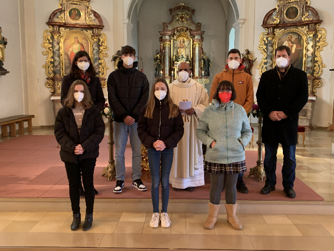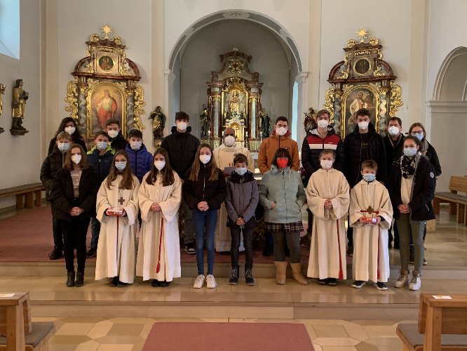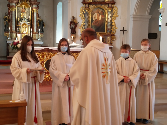 Wie jedes Jahr wurden am Christkönigsfest, den letzen Wochenende des Kirchenjahres, die neuen Ministranten aufgenommen und die scheidenden Ministranten verabschiedet. Herzlich begrüßen wir Judith Held und Hannes Ebner im Kreis der Ministranten. Wir bedanken uns bei den Ministranten: Michael Mrachacz (7 Jahre) Thomas Sedlmeier (7 Jahre) Rebecca Sedlmeier (5 Jahre) Julia Ipfelkofer (4 Jahre) Linda Ipfelkofer (4 Jahre) für Ihr großes Engangement und Einsatz.