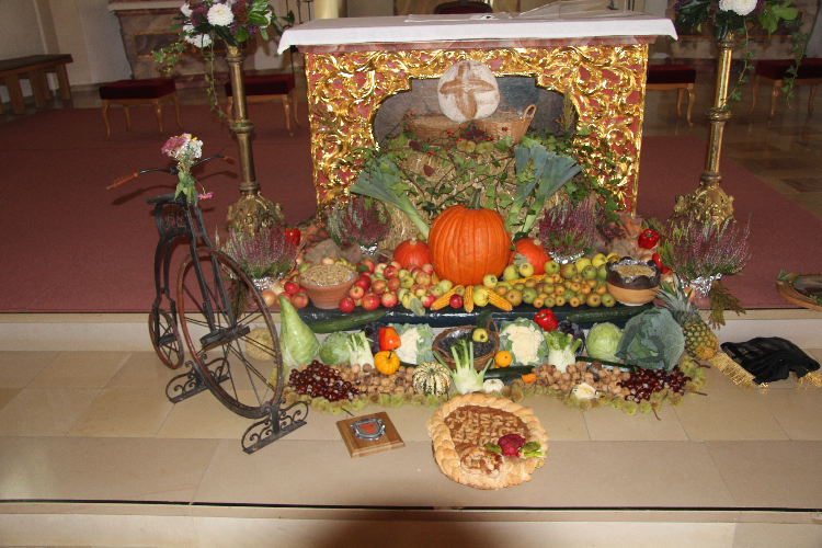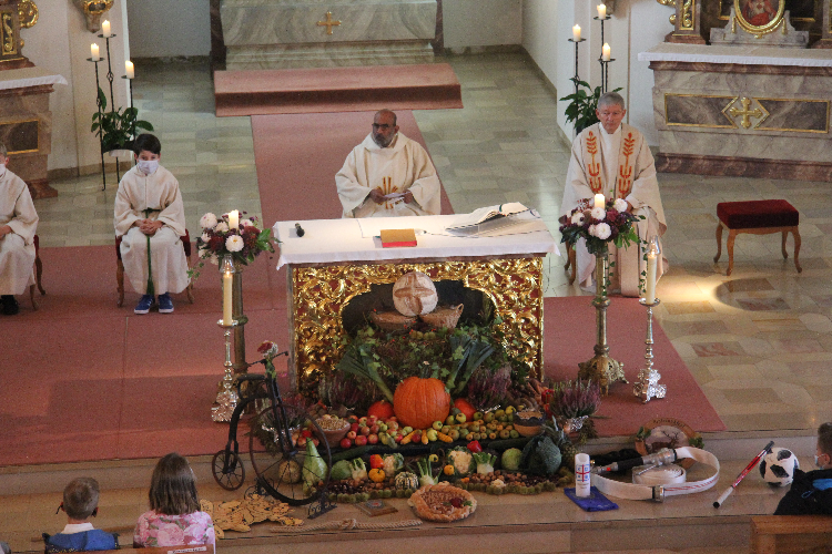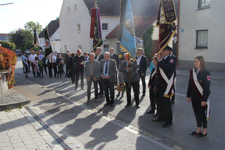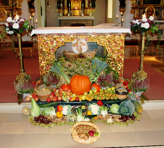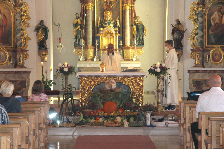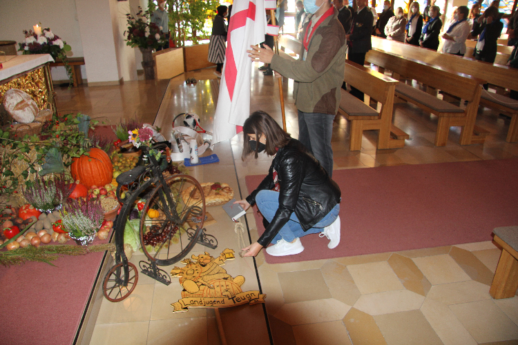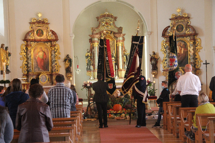 Auch die Teugner Vereine schickten Ihre Fahnen-Abordnungen. Der Altar wurde wieder wundervoll vom Obst- und Gartenbau Verein geschmückt und zeigte die gesamte Pracht der Früchte aus Feld und Garten.