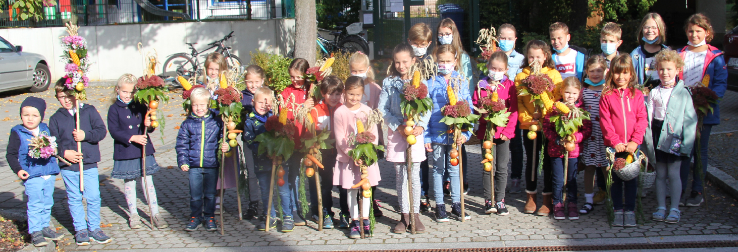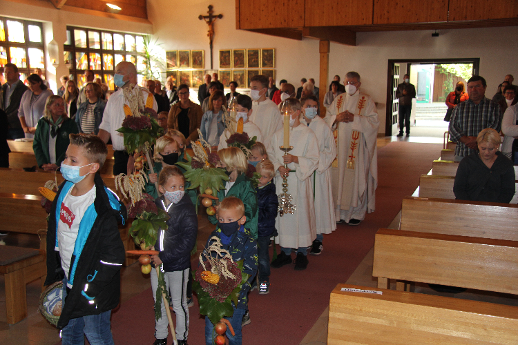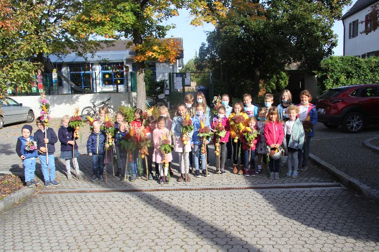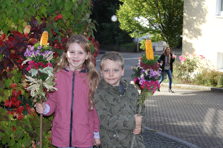 Viele Kinder kamen mit ihren wunderschön dekorierten Erntestangen und Körbchen. Danke nochmals an den Frauenbund welcher am Samstag die Kinder dabei tatkräftig unterstützte.